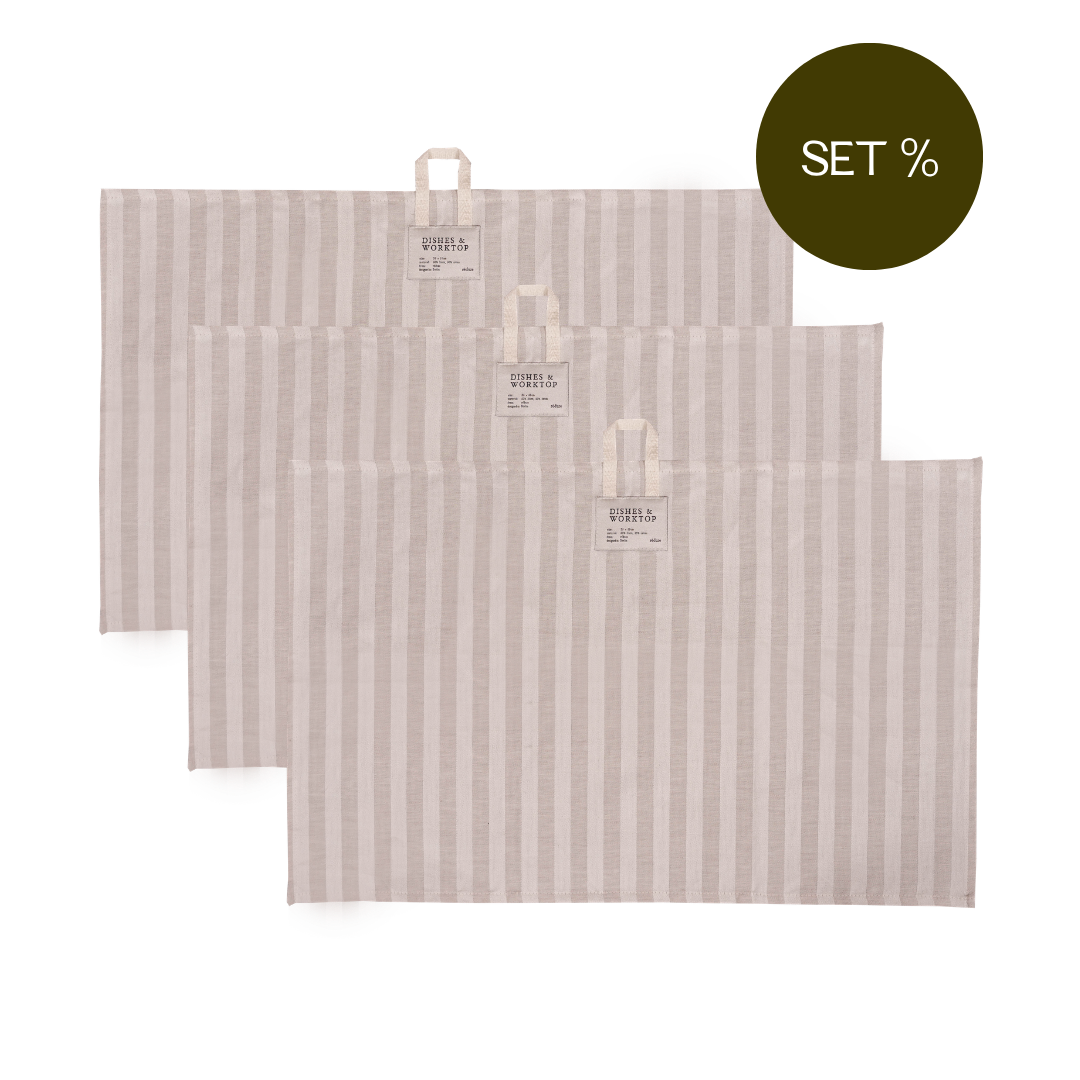 3-er Set Geschirrtuch - DISHES & WORKTOP - natur gestreift
